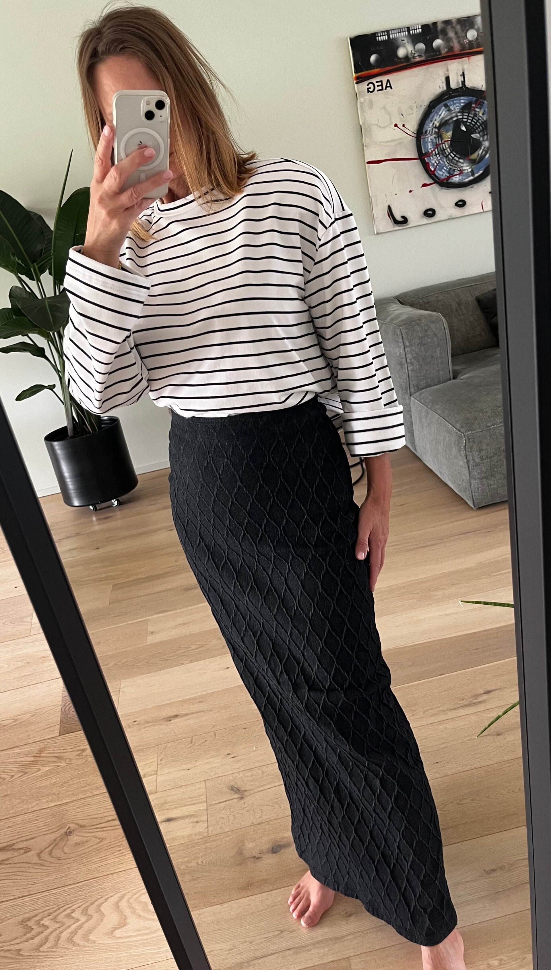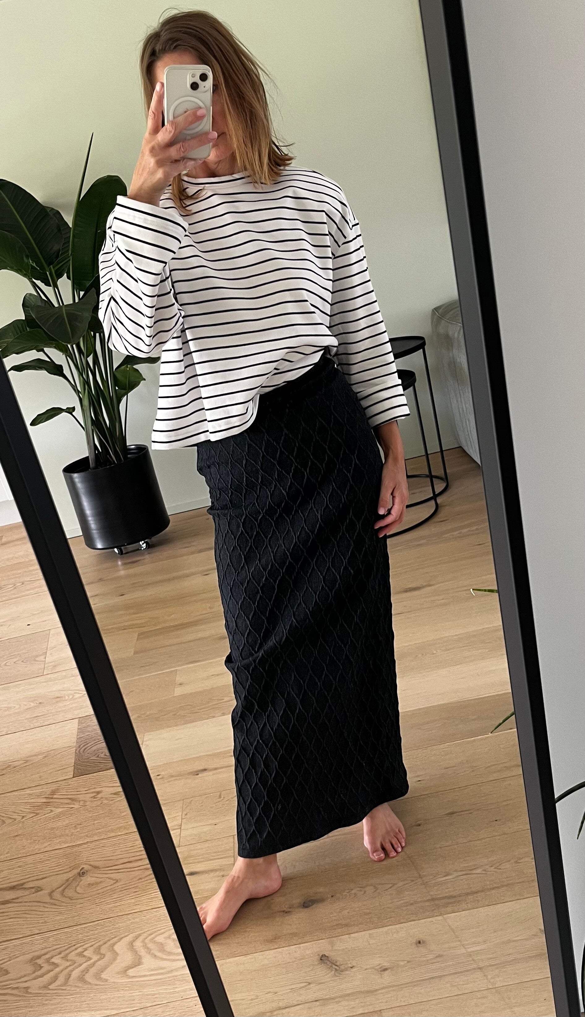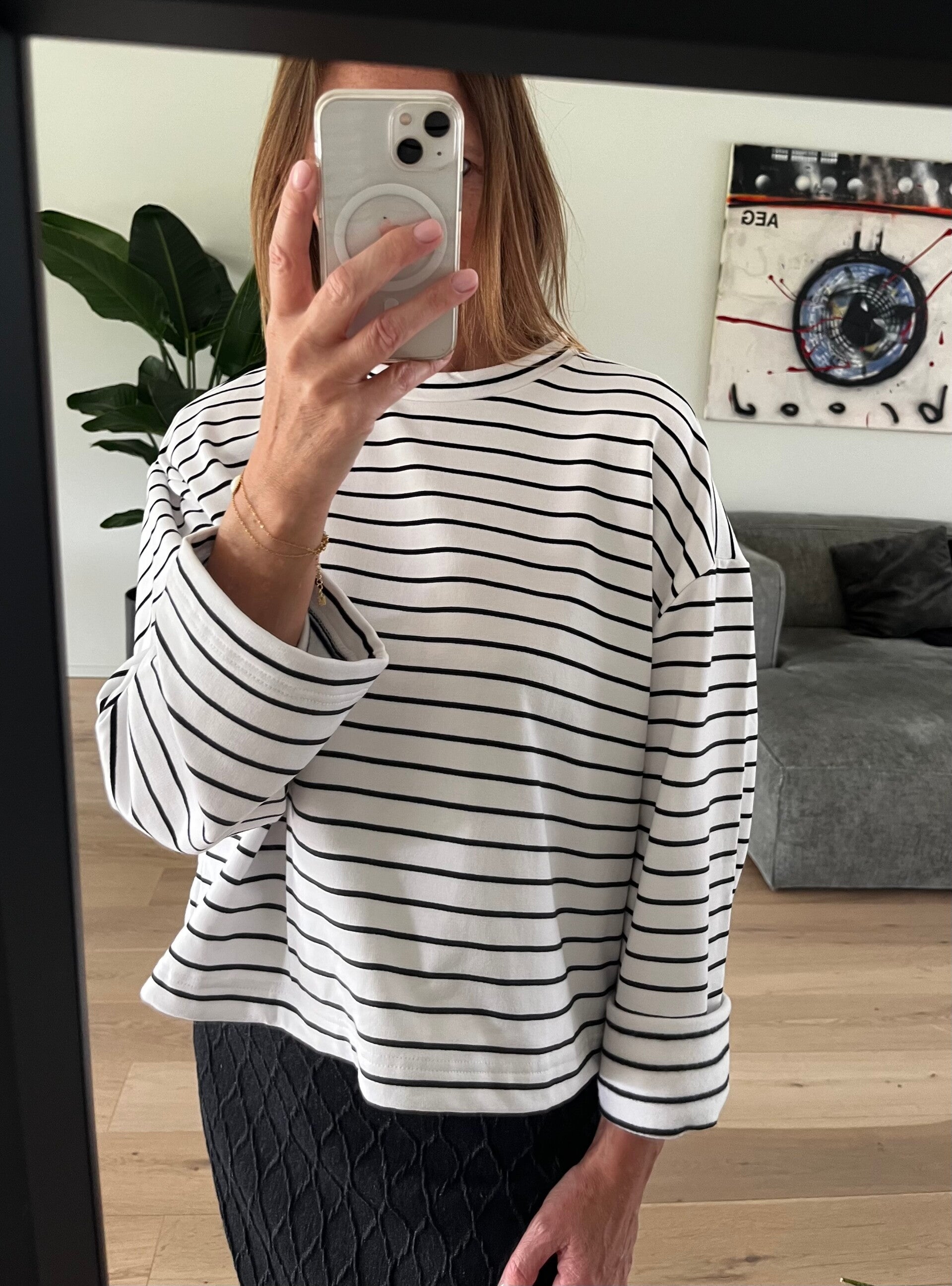 Siba GZ stripe top, white with black