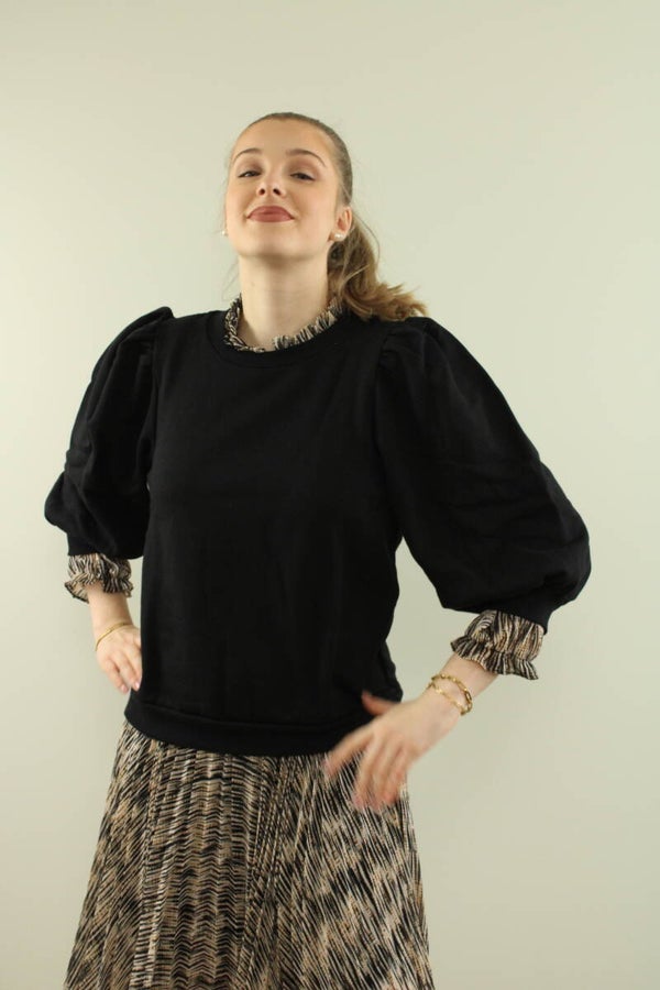 Musthave! Zwart truitje met leuk detail aan de schouder, pofmouwtje.