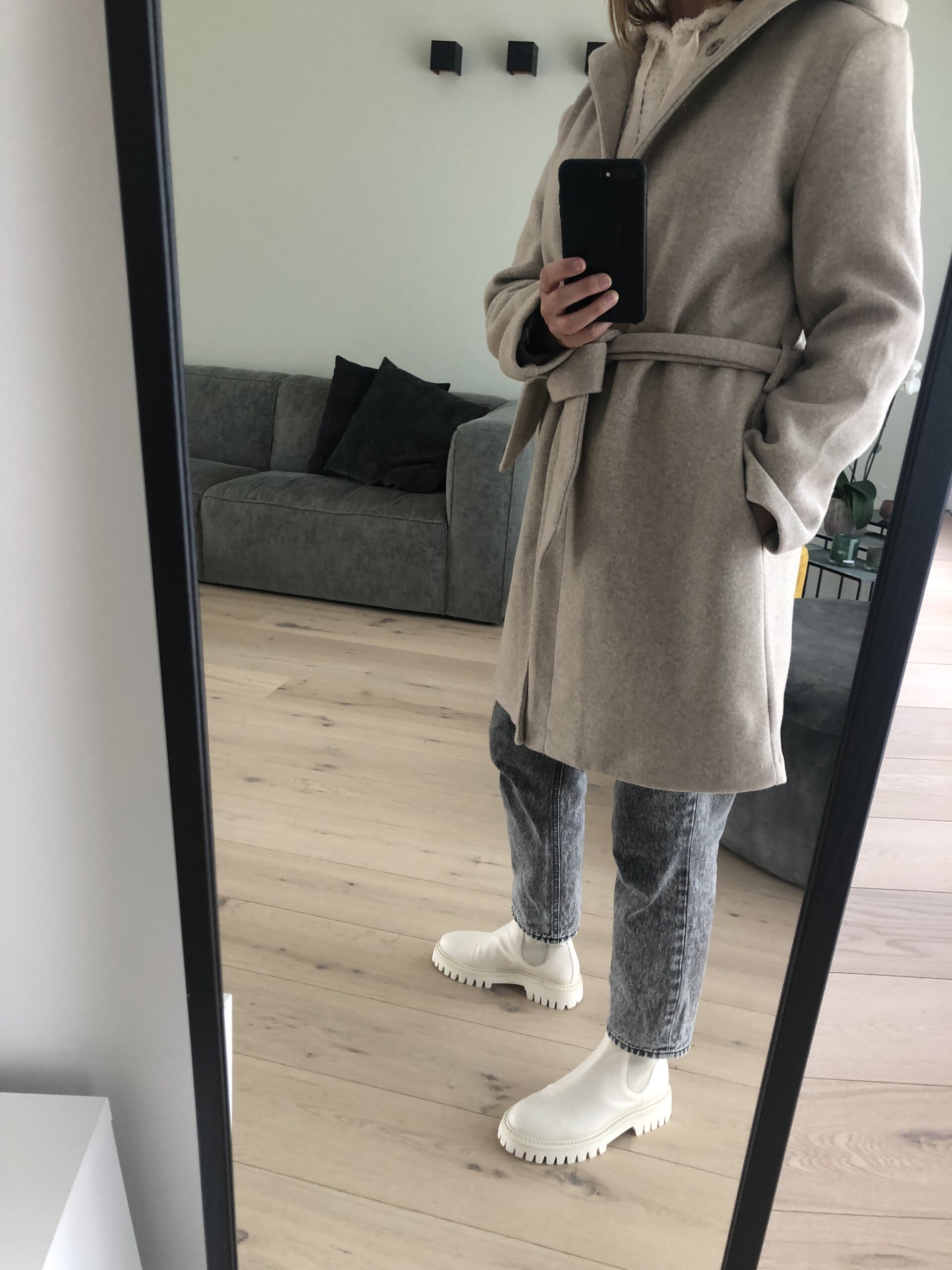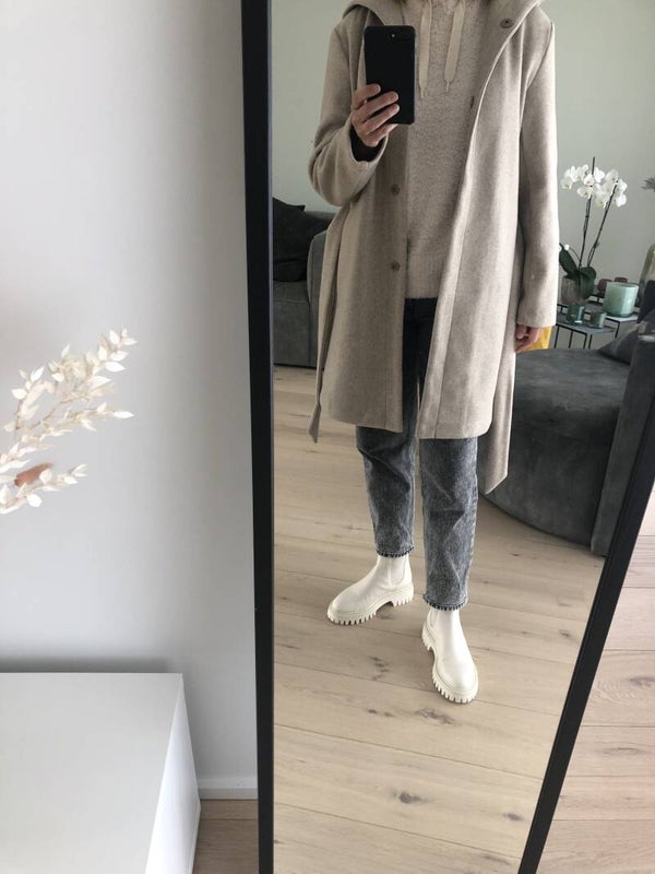 Halflange jas, beige mét kap