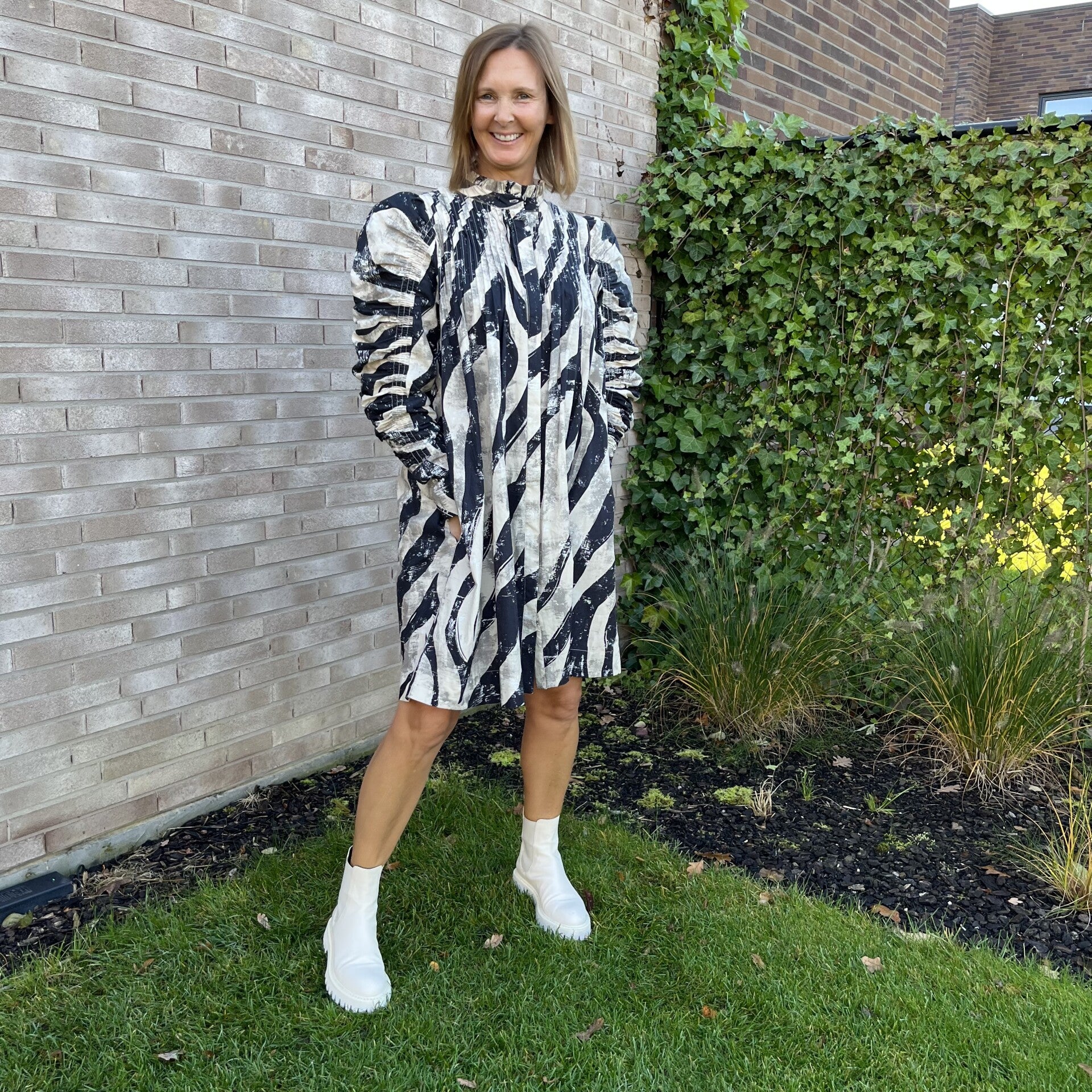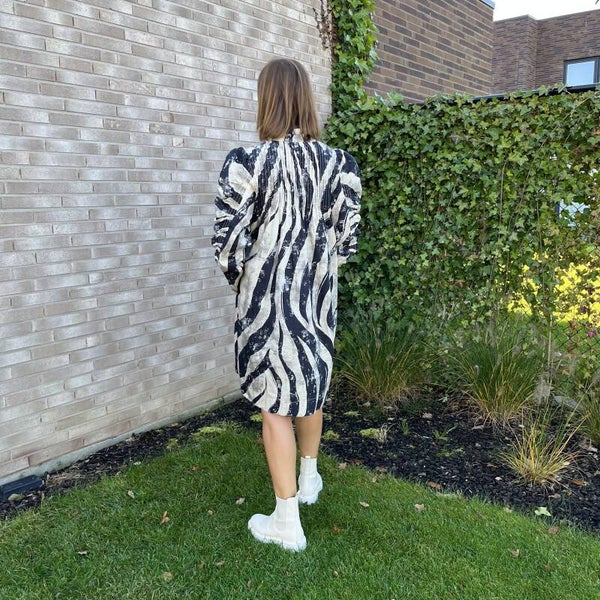 Korte jurk, zwart off-white