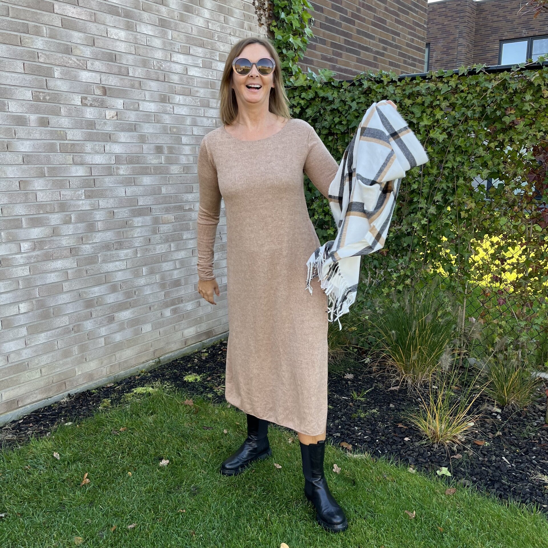 Halflange jurk met splitjes, camel