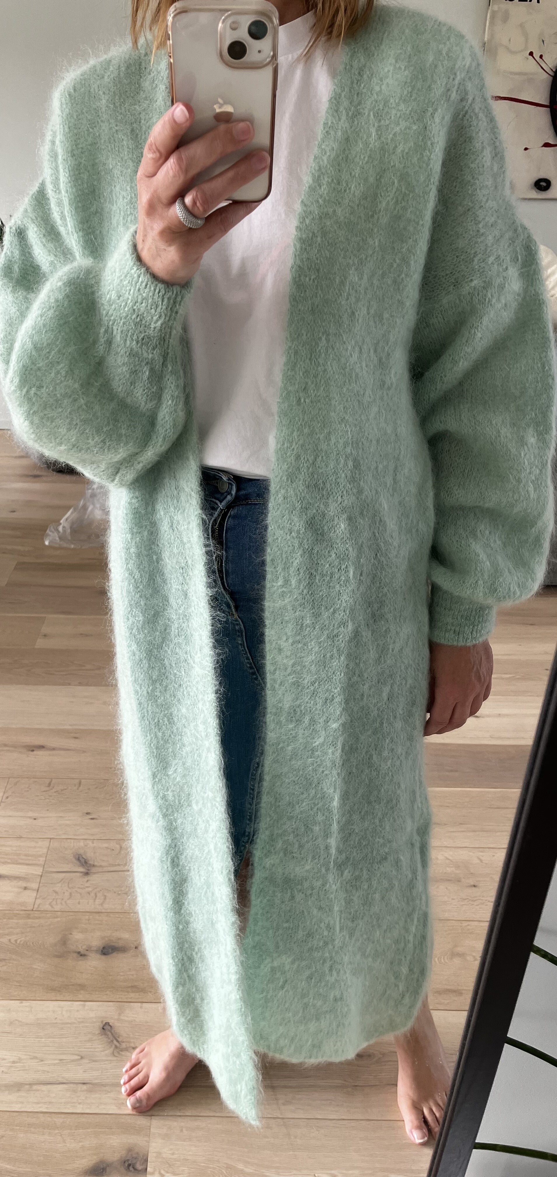 Lange mohair gilet, lichtgroen